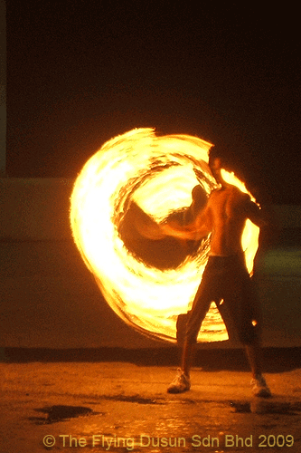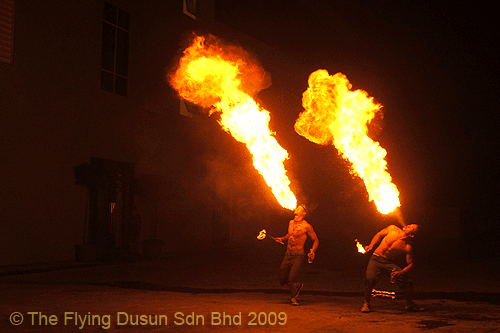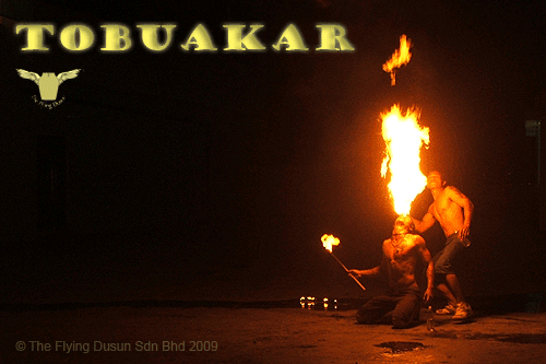 Tobuakar... Fire Spitting Performance We have recently added Fire Spitting to our repertoire, as a grand finale to our performances, or as a special welcome for your guests. Tobuakar means 'dragon' in Dusun...! Fire spitting can also be performed on its own; please note that fire spitting can only be performed outside and during good weather conditions.