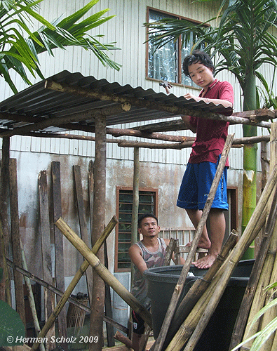bamboo smoking rack, and further up is the drying rack for firewood,