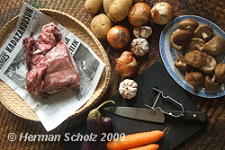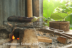 Grilled brinjal - served with a hot sambal, and the ingredients for a delicious wild boar goulash |