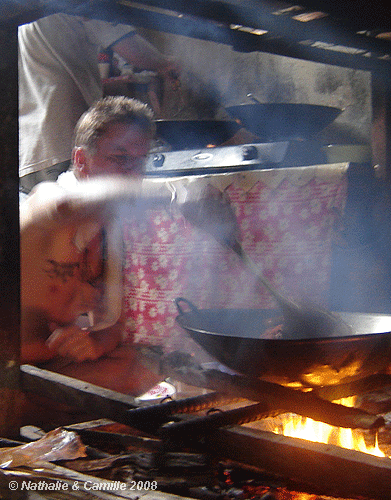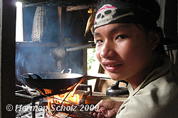 Me cooking in an Iban longhouse in Sarawak - note at the back the gas